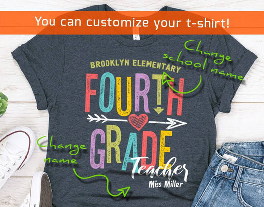 Personalized Fourth Grade Teacher Team T-Shirt - Teacher Crew Squad Shirt
