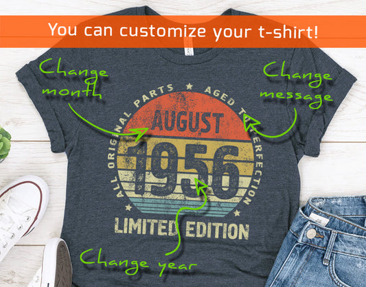 Vintage August 1956 shirt - birthday gift t-shirt for sister or brother - 65 anniversary tshirt for wife or husband - All Original Parts Aged to Perfection