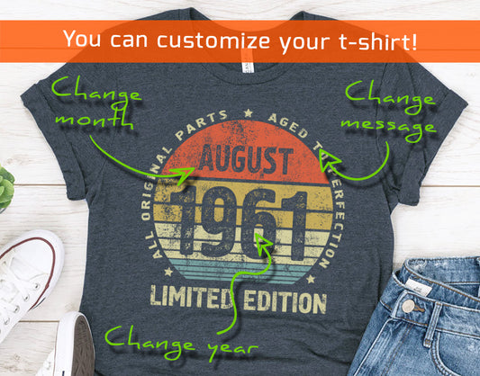 Vintage August 1961 birthday gift t-shirt - Aged to Perfection Better with Time