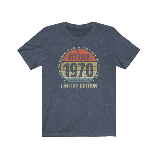 1970 Birthday gift ideas, October T-Shirt, Aged to Perfection Better with Time