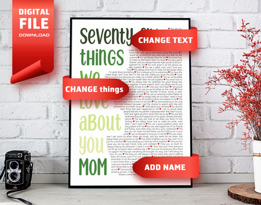 Seventy Things We Love About You - Digital Canvas Print File