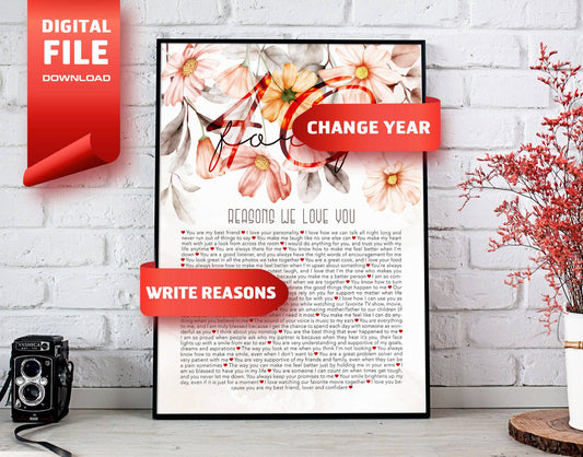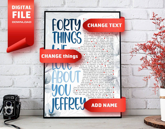 Unique 40th Birthday DIY Gift - Forty things we love about you - Personalized Name and things