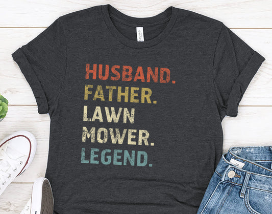 Husband. Father. Lawn Mower. Legend. Funny Lawn Care Dad Shirt