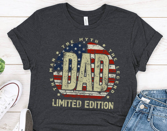 Dad T-Shirt Vintage USA Flag – The Man The Myth The Legend