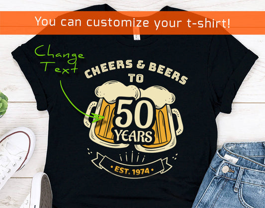 50th Birthday Gift Shirt for Men or Women - Cheers and Beers to 50 Years tee for Wife or Husband