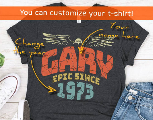 Epic Since 1973 birthday shirt for husband or men, Personalized with name Gift shirt for Brother or dad