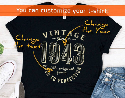 Vintage 1943 birthday shirt for dad or mom, Gift shirt for men or women