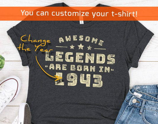 Awesome Legends are born in 1943 birthday shirt for men or women, Gift shirt for wife or husband