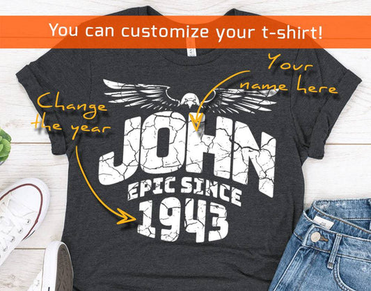 Epic Since 1943 birthday shirt for Husband or Dad, Personalized name t-shirt for men or brother