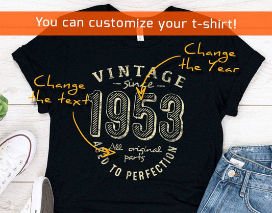 Vintage 1953 birthday shirt for women or men, Gift for wife or husband