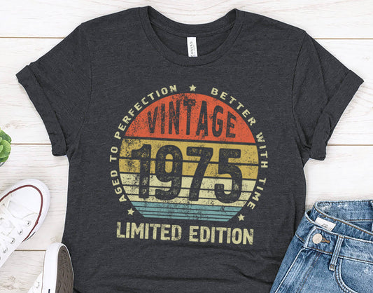 Vintage 1975 birthday Gift shirt for Husband or Wife, Aged to Perfection