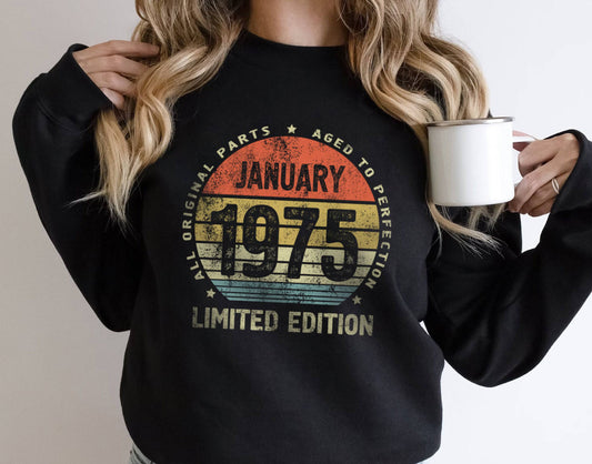 January 1975 birthday Gift t-shirt for Men or Women, 50 Anniversary Tee, Made in 1975 Party Shirt, Aged to Perfection
