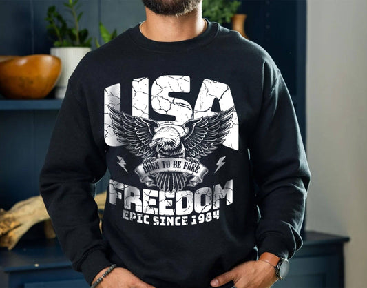 Born to Be Free USA Eagle T-Shirt | Patriotic Gift for 1984 Birthdays | Freedom American Tee