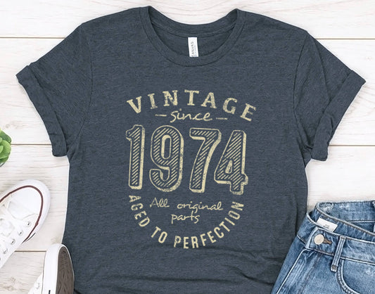Vintage 50th birthday Gift t-shirt for Men or Women, Turning 50 Celebration Tee, Born in 1974 Shirt