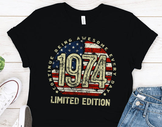 Vintage 1974 birthday Gift t-shirt for Men or Women, Turning 51 Celebration Tee with American Flag