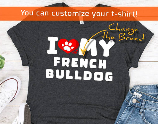I Love My French Bulldog Gift Shirt for Men or Women, Dog Lover gift t-shirt