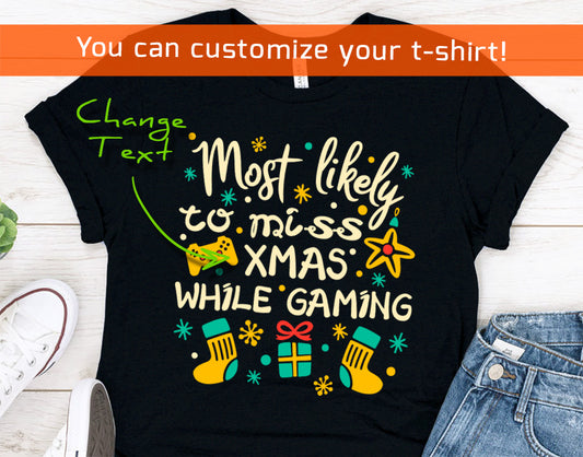 Most Likely to miss XMAS while gaming T-shirt, Most Likely To Christmas Shirts, Custom Most Likely T-Shirts
