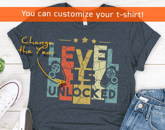 Level 15 Unlocked Shirt for him or her, 15th Birthday gift for Son or Daughter
