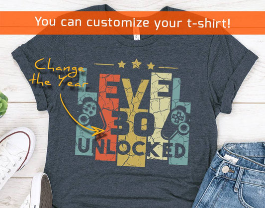 30th Birthday Gift for men or brother, Level 30 Unlocked Funny Gamer Shirt for son or boyfriend