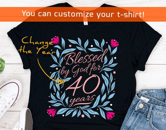 Blessed by God for 40 years gift t-shirt for women or wife, 40th Anniversary t-shirt