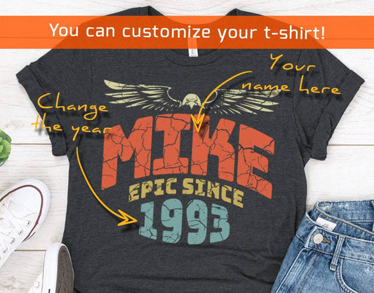 Personalized Name Epic Since 1993 Retro T-Shirt, Birthday Shirt, Gift For Him