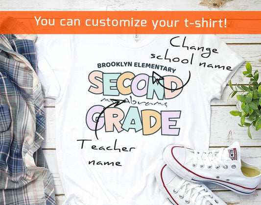 Second Grade Teacher Shirt, 2nd Grade Personalized Teacher and School Name Shirt