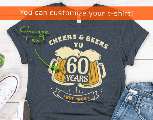 60th Birthday Gift T-Shirt for Men or Women, Cheers and Beers to 60 Years
