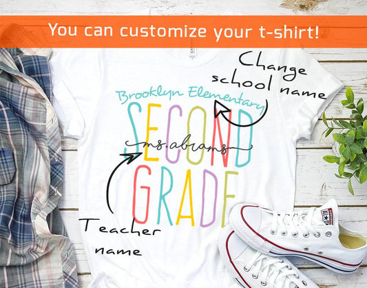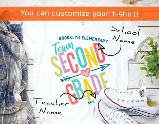 2nd Grade Teacher Shirt, Second Grade Personalized Teacher and School Name Shirts