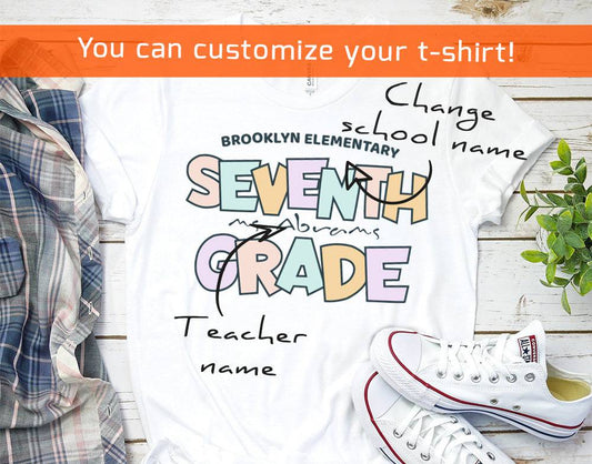 Seventh Grade T-Shirt, Personalized School and Teacher Name Shirt