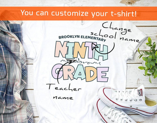 Ninth Grade Shirt, Personalized Teacher and School Name 9th Grade Shirt