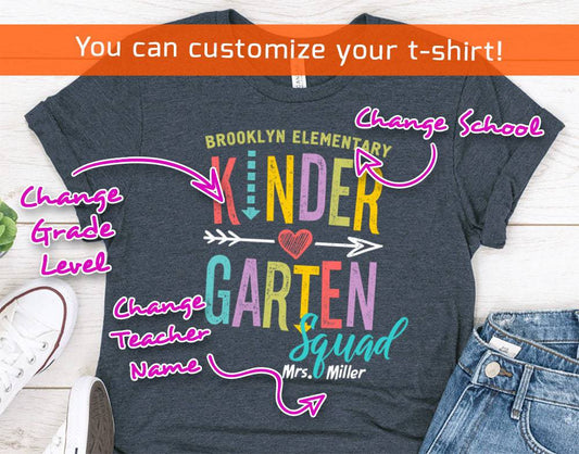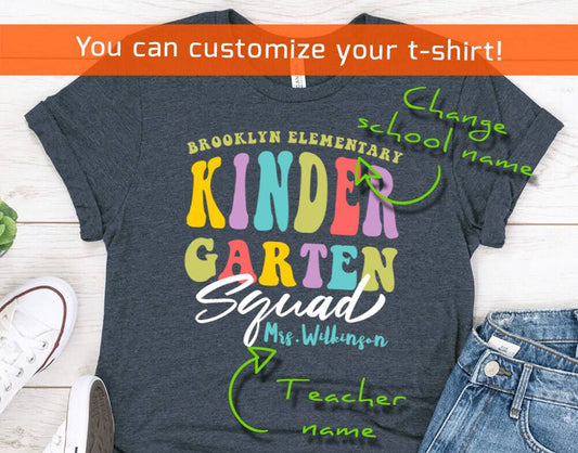Personalized Kindergarten Teacher Squad T-Shirt - Customized Teacher Team T-Shirt