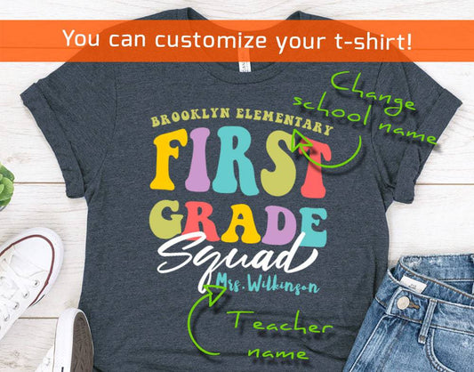 Personalized First Grade Teacher Team T-Shirt - Elementary School Squad Tee