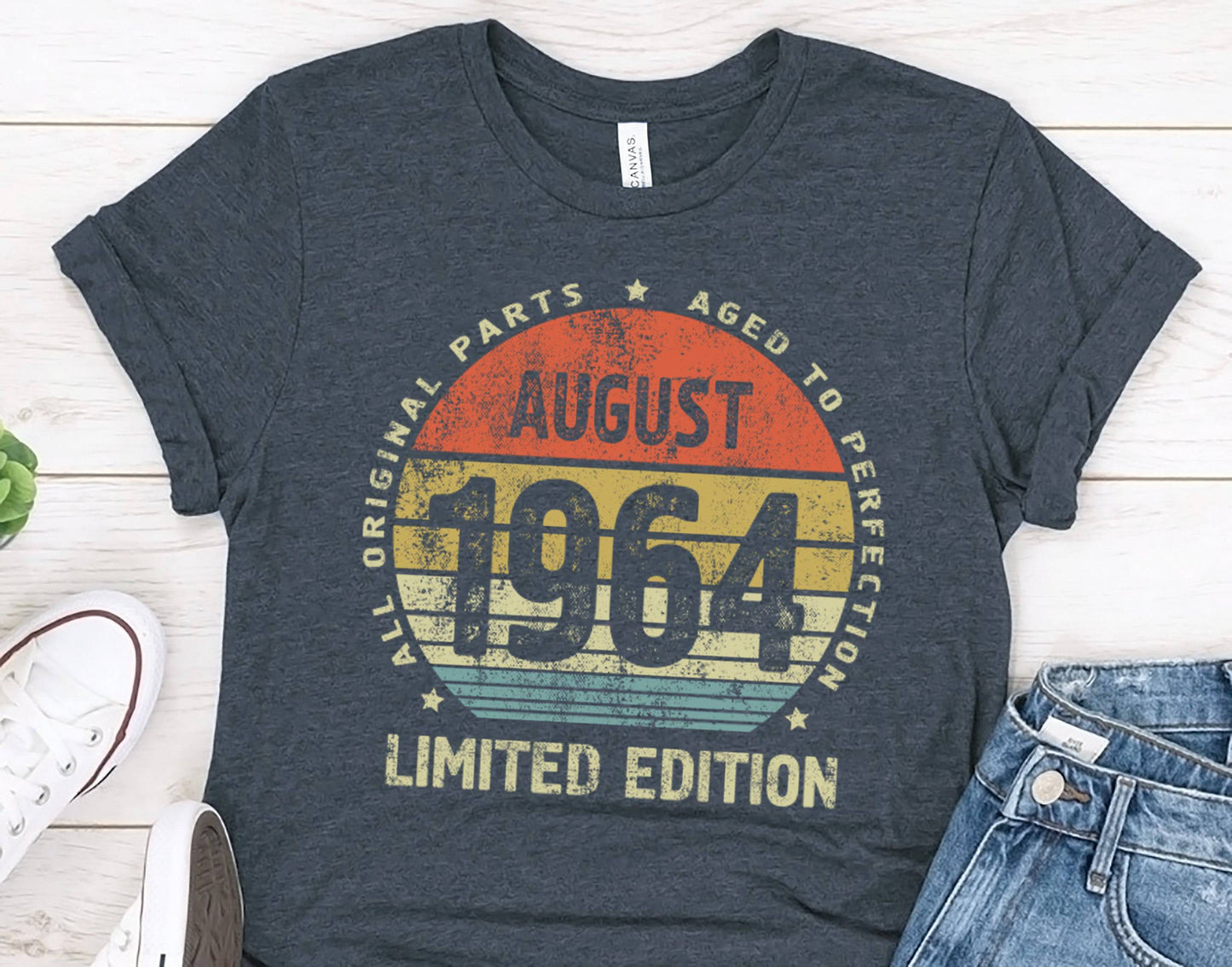 August 1964 birthday gift t-shirt, Born in August shirt, All Original Parts Aged to Perfection