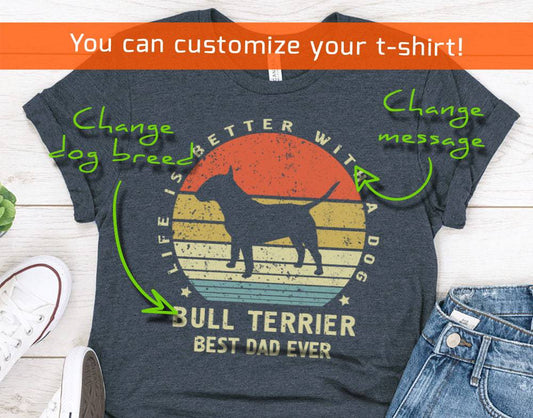 Mens Bull Terrier Best Dog Dad Ever T-Shirt, Dog Lover Owner T-Shirt for Husband and Father