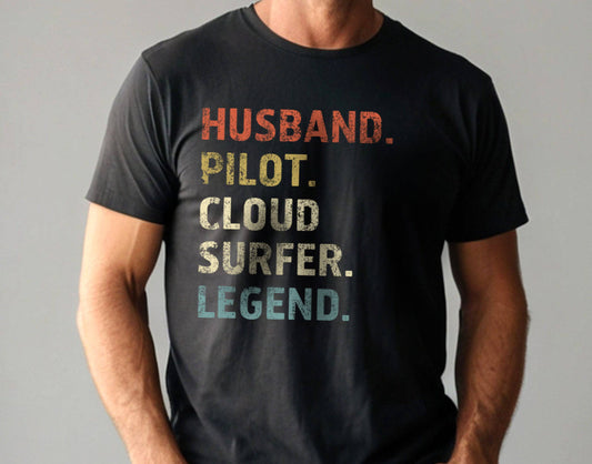 Husband. Pilot. Cloud Surfer. Legend. Funny Aviation T-Shirt for Men | Pilot Gift