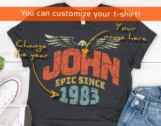 Epic Since 1983 Personalize name birthday gift for men or husband, Gift shirt for brother or friend