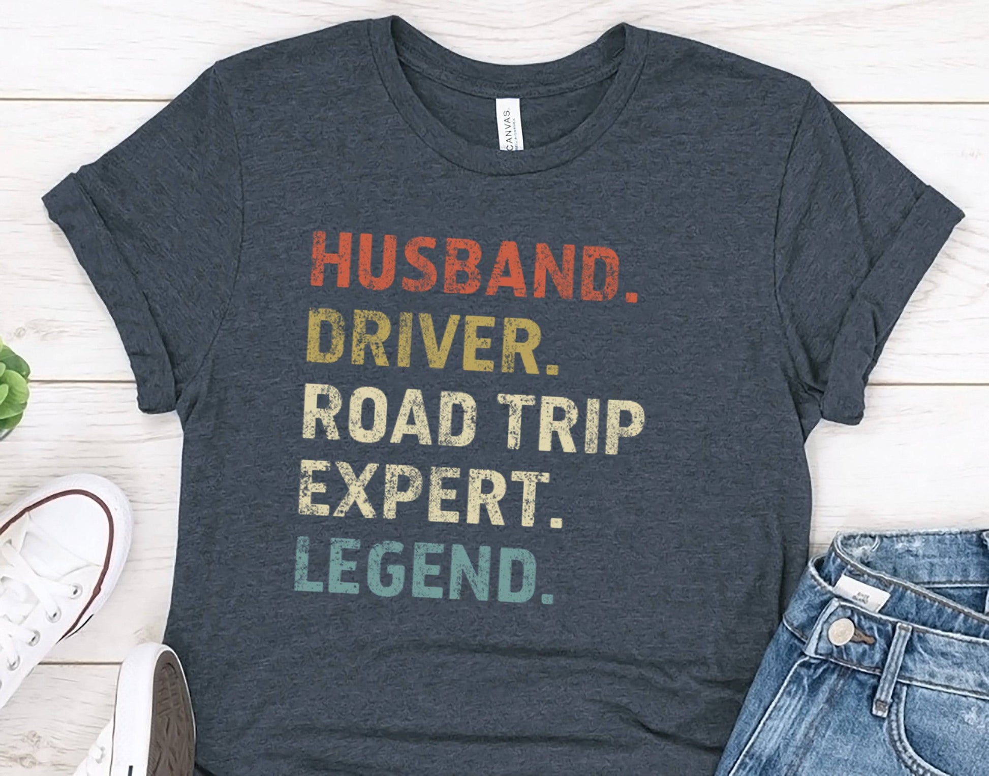 • We use the highest quality t-shirts that won’t deform after washing your Husband. Driver. Road Trip Expert. Legend. Legend. t-shirt.