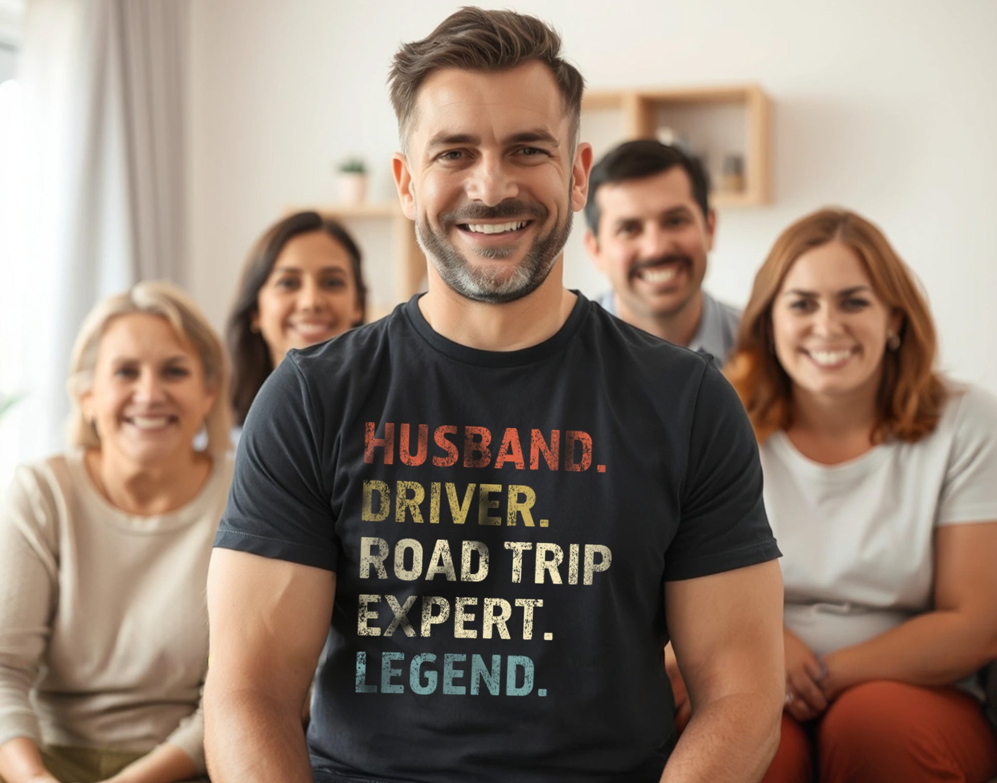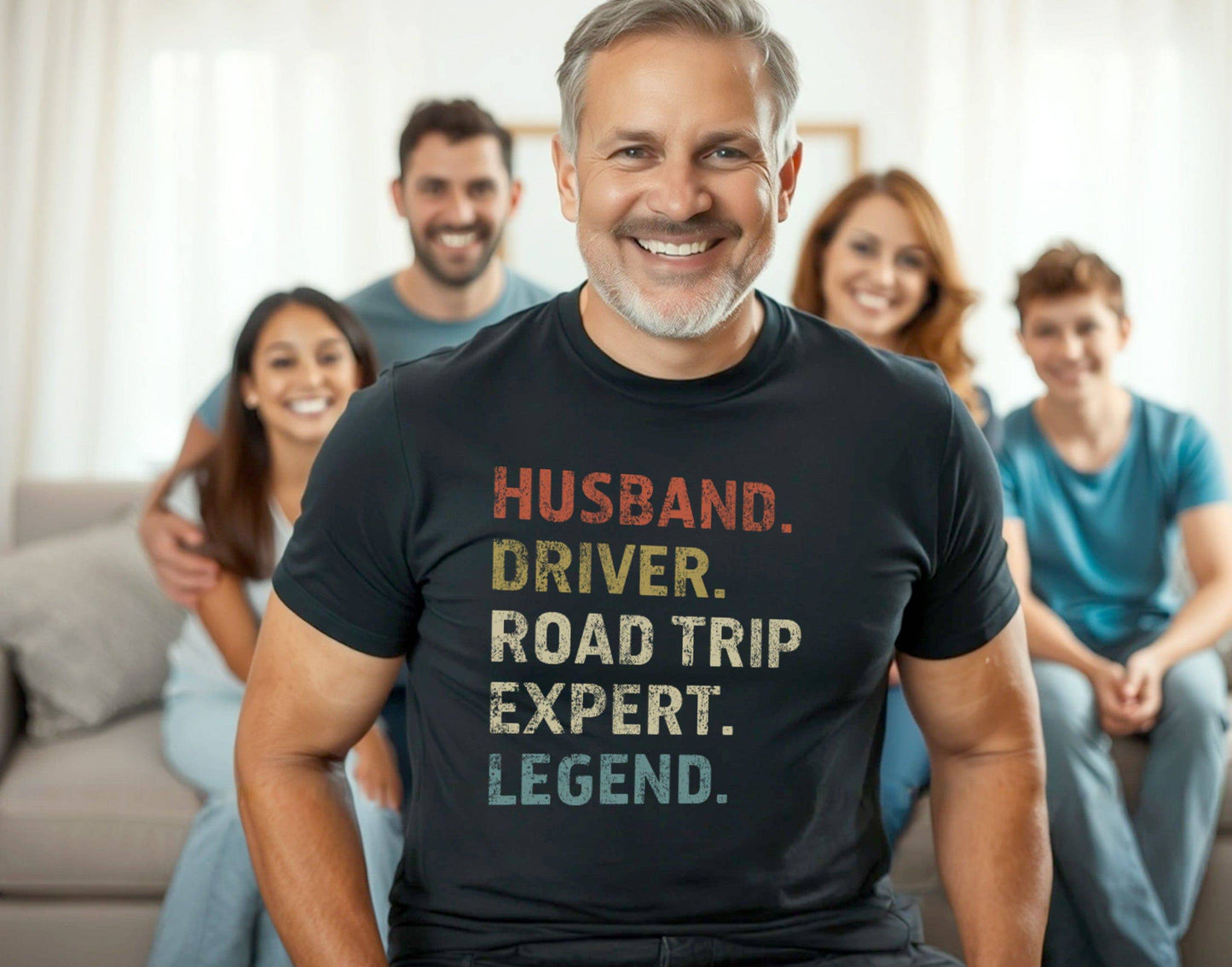 • All Husband. Driver. Road Trip Expert. Legend. t-shirts for Men are made to order just for you.